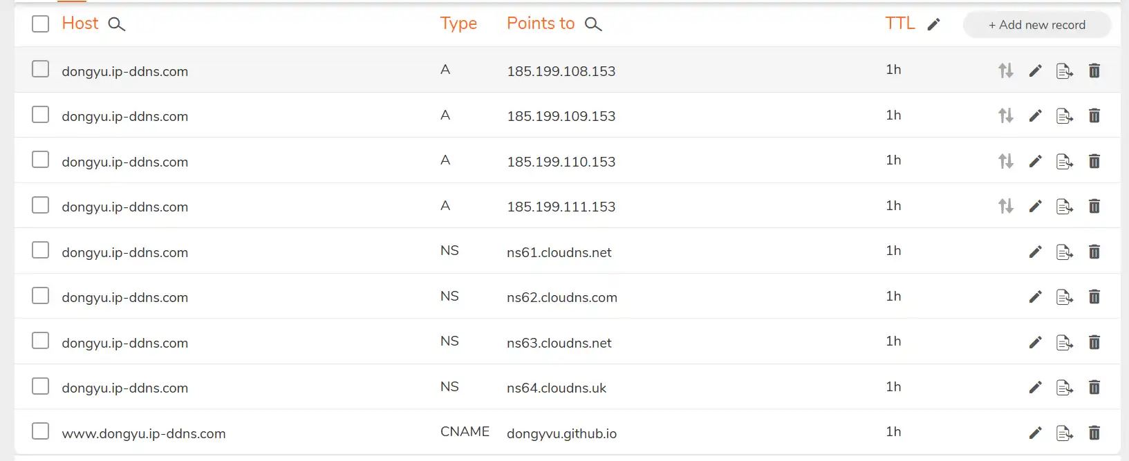 首先,买个域名。奈何本人不想每年交一笔钱来运营这个没人看的博客,于是选择了免费的二级域名。我选择了cloudns提供的二级域名,如下图设置就行