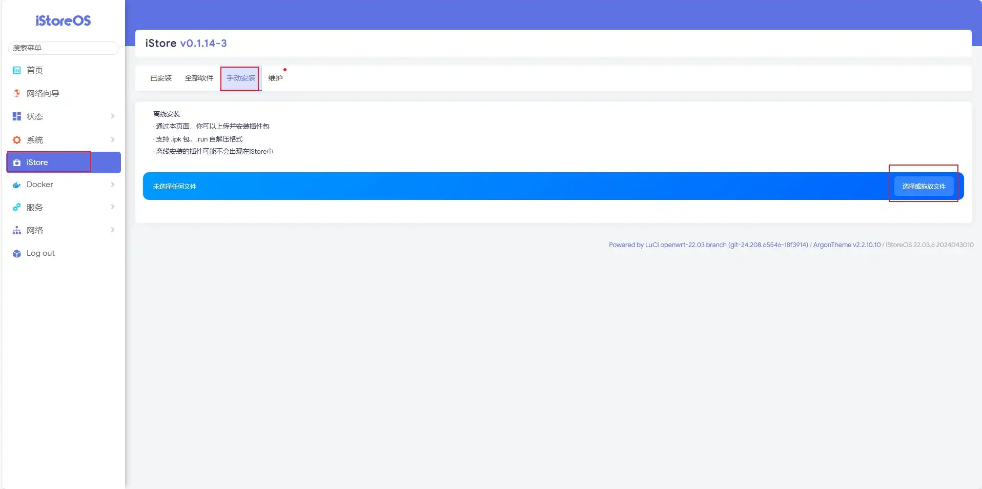 iStore——手动安装——选择文件,手动安装ipk包