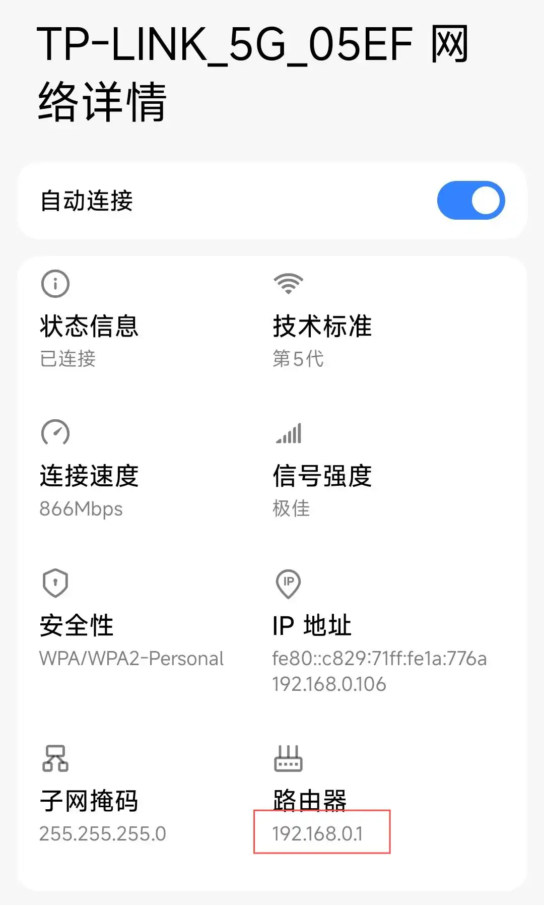 网关:192.168.1.1(一般光猫的IP都是这个,如不确定可以在终端执行route -n查看)