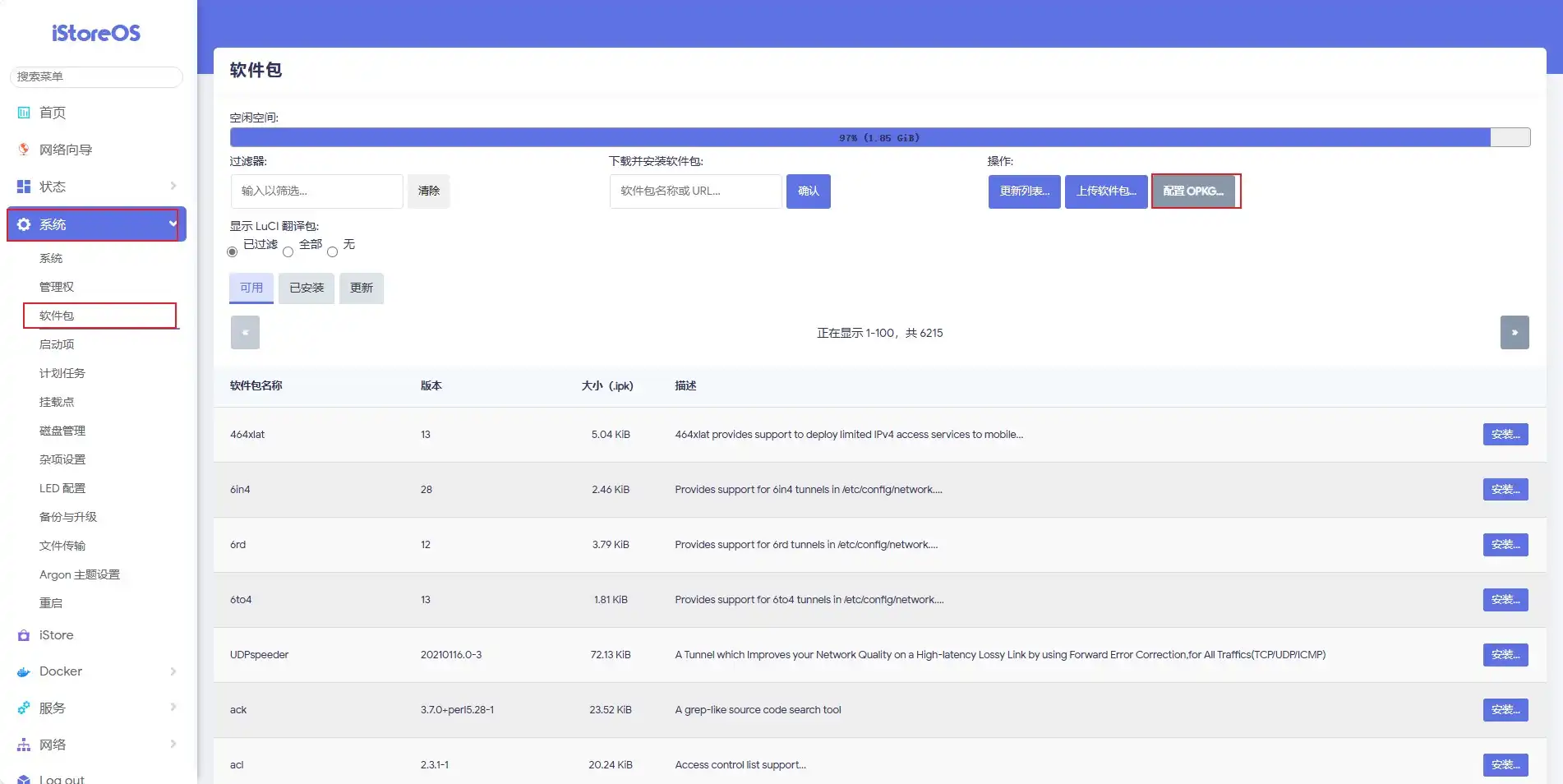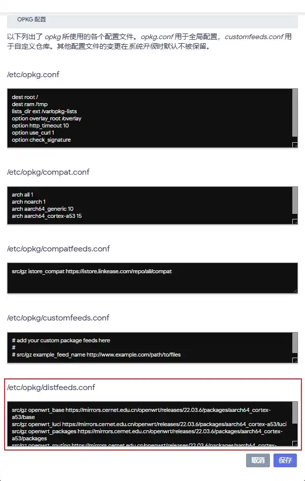找到系统——软件包——opkg配置