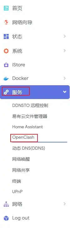 安装完成后刷新网页,找到服务——OpenClash